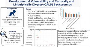 Developmental vulnerability among CALD and non-CALD children. A population-based study of nearly 60,000 children in Western Australia revealed that those from CALD backgrounds faced higher developmental vulnerability. Compared with their peers, CALD child